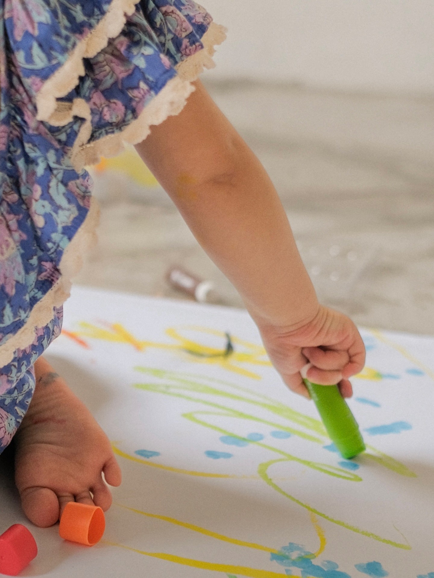 Our Baby Art class combines playful art-making with Laroo Gym–based movement activities,